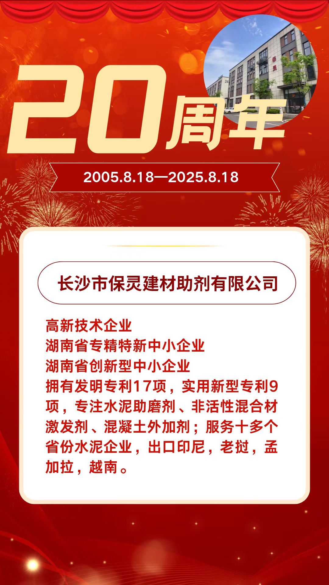2005-2025,保靈以創(chuàng)新為基因,專注水泥助磨劑、非活性混合材激發(fā)劑及混凝土外加劑研發(fā),用26項自主專利推動行業(yè)節(jié)能降耗,助力客戶提質增效,成為水泥外加劑領域的技術標桿。